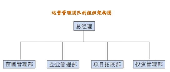 在总经理下设四个职能部门,即苗圃管理部、企业管理部、项目拓展部和投资管理部。