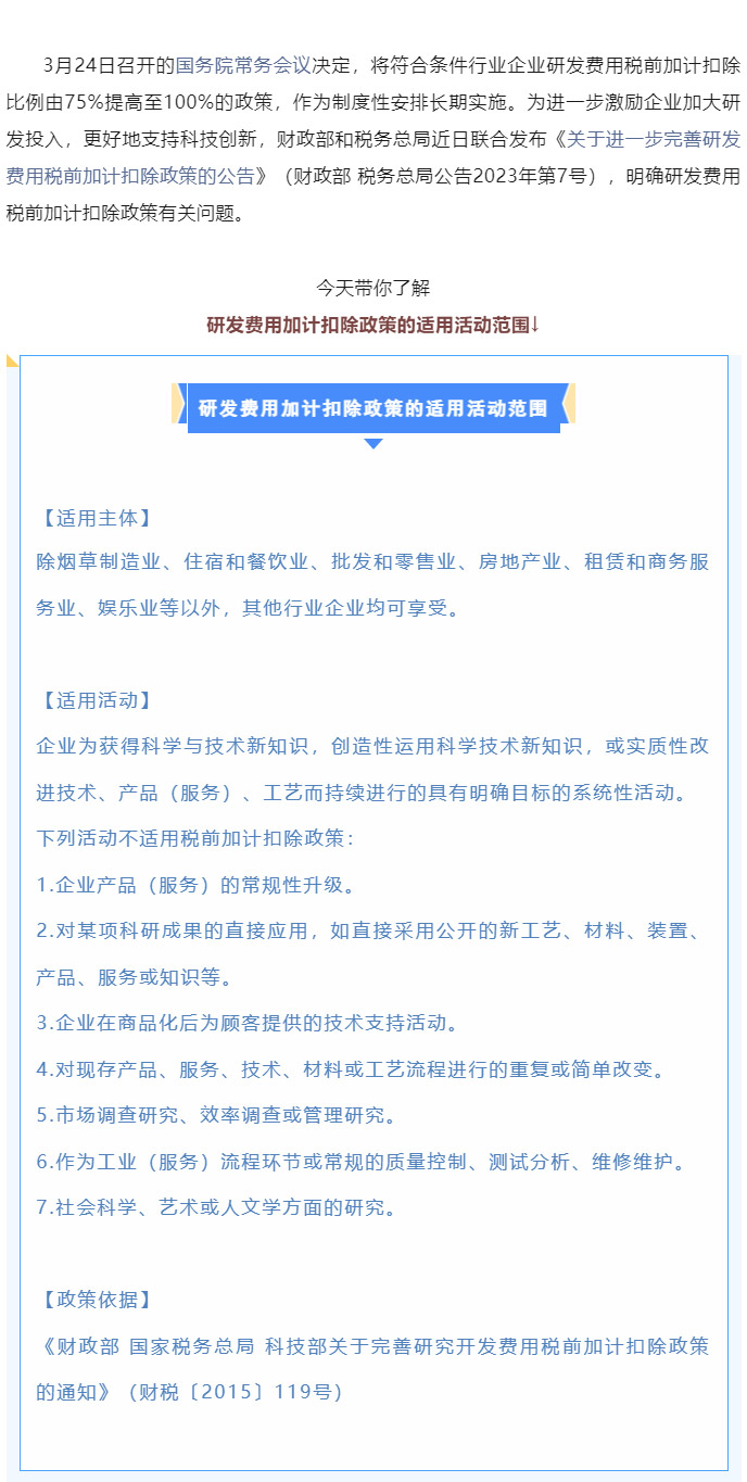 【政策资讯】关于研发费用加计扣除政策的适用活动范围