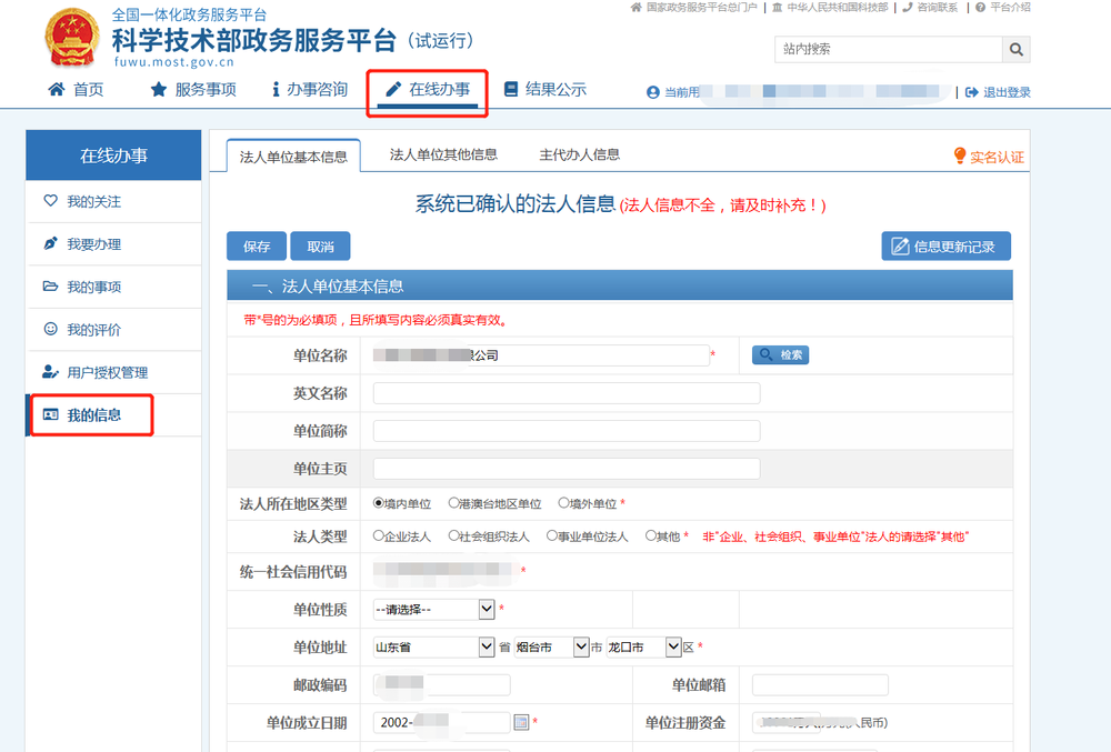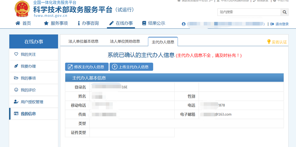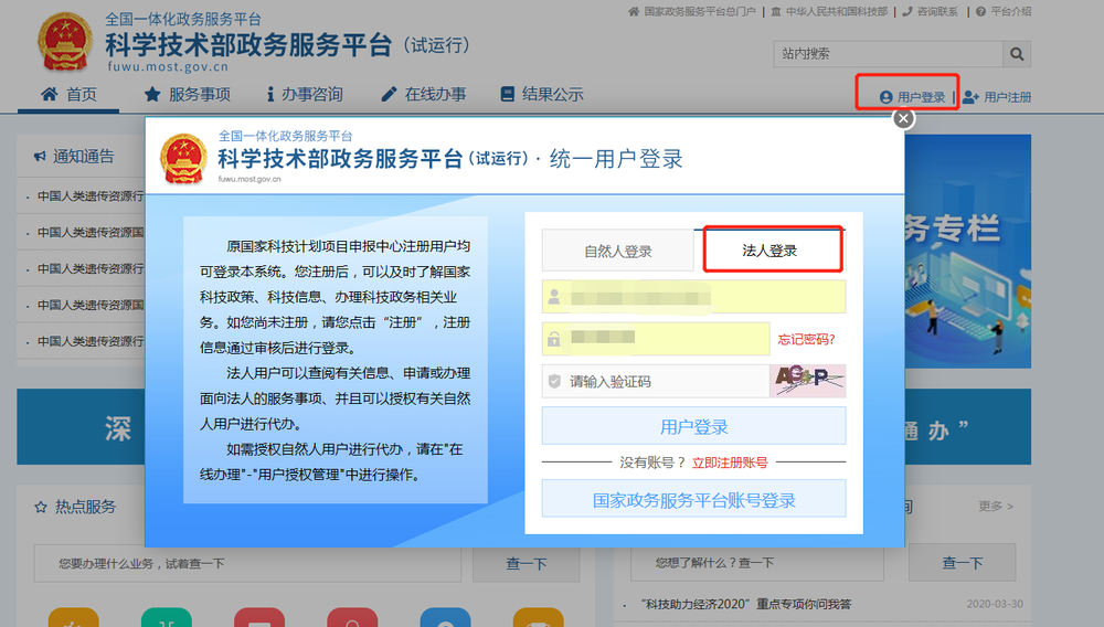 科学技术部政务服务平台注意事项