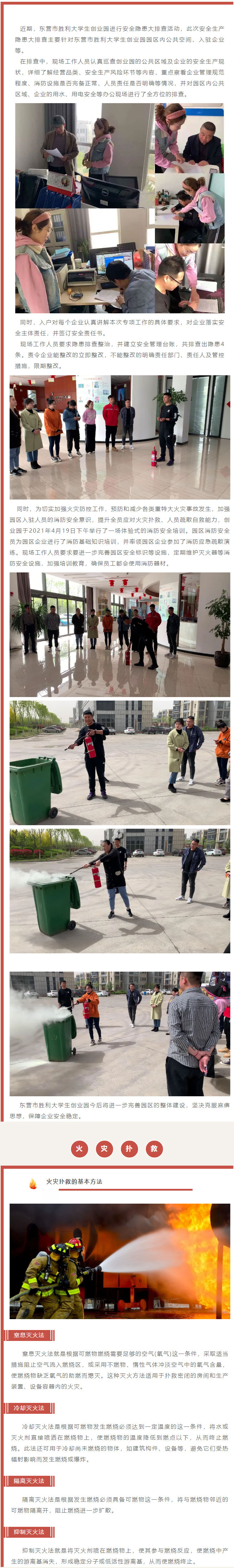 东营市胜利大学生创业园开展安全隐患大排查及消防演练活动