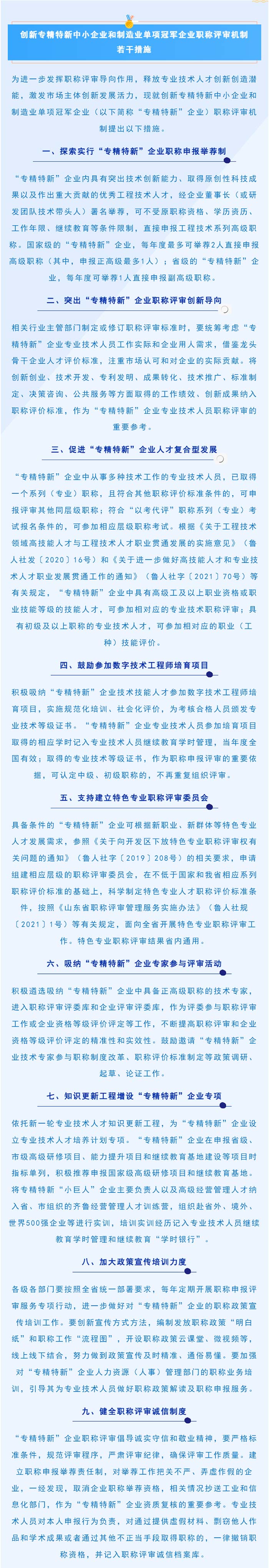 创新专精特新中小企业和制造业单项冠军企业职称评审机制若干措施