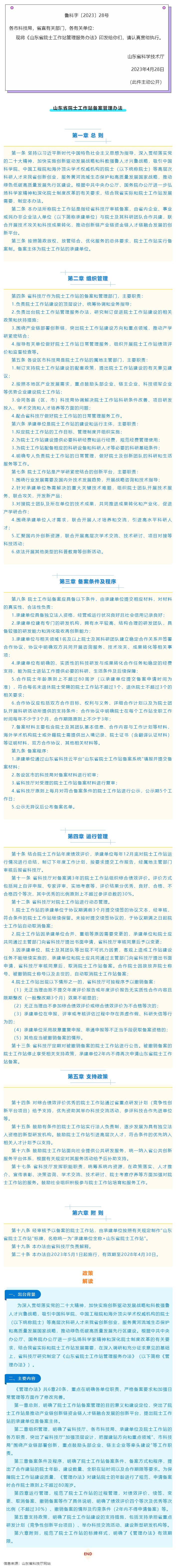 关于印发《山东省院士工作站管理服务办法》的通知