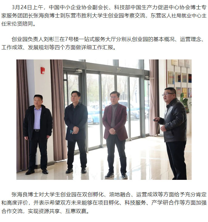 中国中小企业协会副会长张海良博士到创业园考察交流