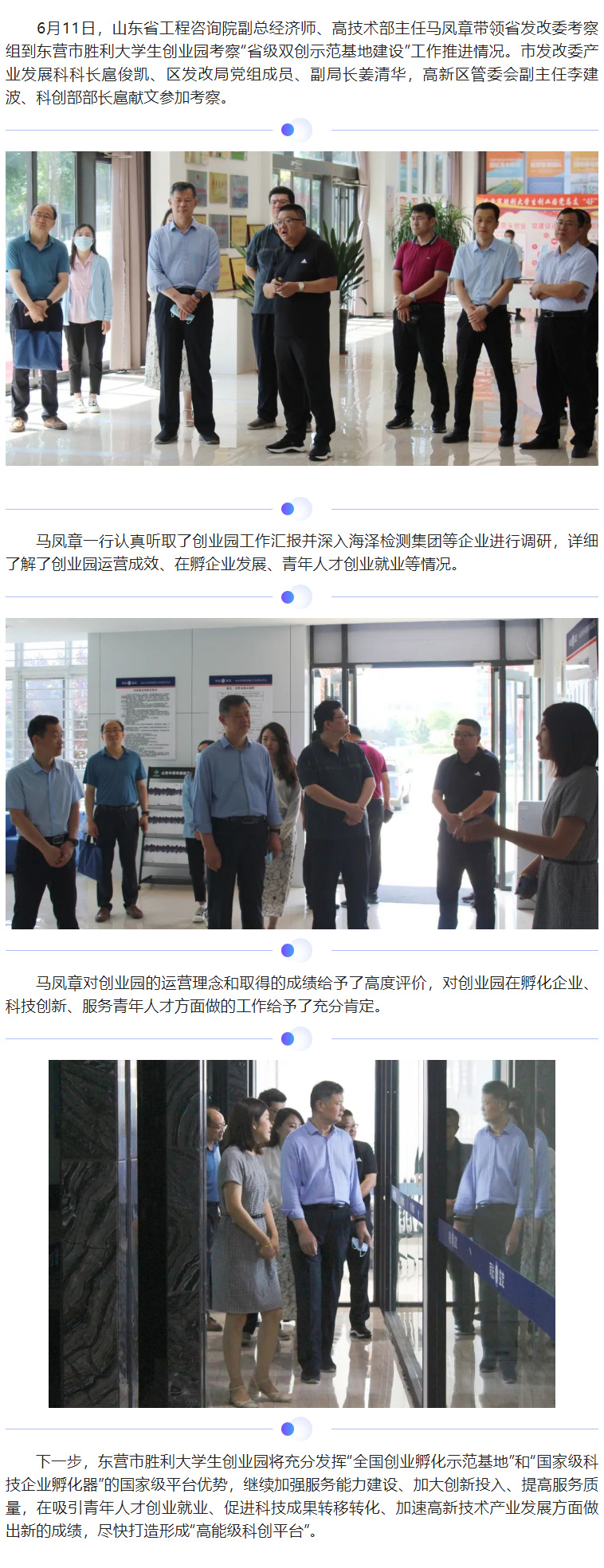 省发改委考察组到东营市胜利大学生创业园考察“省级双创示范基地建设”工作推进情况