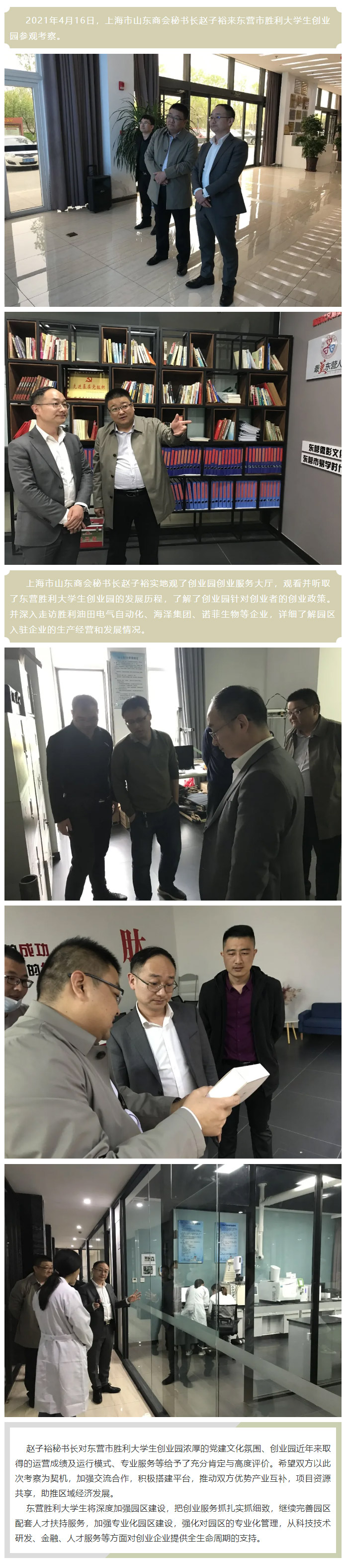 上海市山东商会秘书长赵子裕来创业园参观考察
