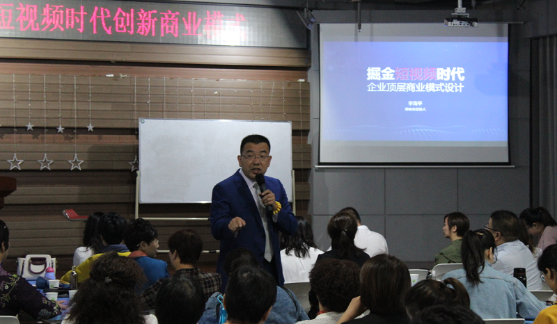 大会下午,李老师主要分享了企业短视频商业模式顶层设计。他带领团队亲自实践了短视频商业模式的落地,并总结了企业短视频创新商业模式的架构:短视频做品牌、用直播来转化、用微信做客服、打造人设品牌、用产品来变现。他提出企业短视频营销的核心是人设品牌营销模式的升级,那就需要精准定位自己的企业品牌人设,才可以做到短视频IP和企业IP的匹配,就更容易引流变现。