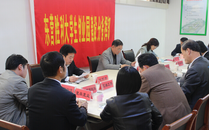 2014年3月25日,在东营市胜利大学生创业园建设分指挥部召开了调度会议,区委常委、副区长,分指挥部指挥陈卫奎同志主持会议,副区长段鸿、以及团区委、区纪检二组、区住建局、区科技局、区油工委、市区国税局、东营地税分局、区工商局、胜园街道、里奥集团等相关单位的同共同参加了会议。会上,区委组织部副部长、区人力资源和社会保障局局长张乐春同志在会上就东营胜利大学生创业园基本情况和目前进展作了说明,并汇报了下一步的工作打算。陈副区长听取汇报后,对东营市胜利大学生创业园的相关工作做出高度评价,并作重要讲话。