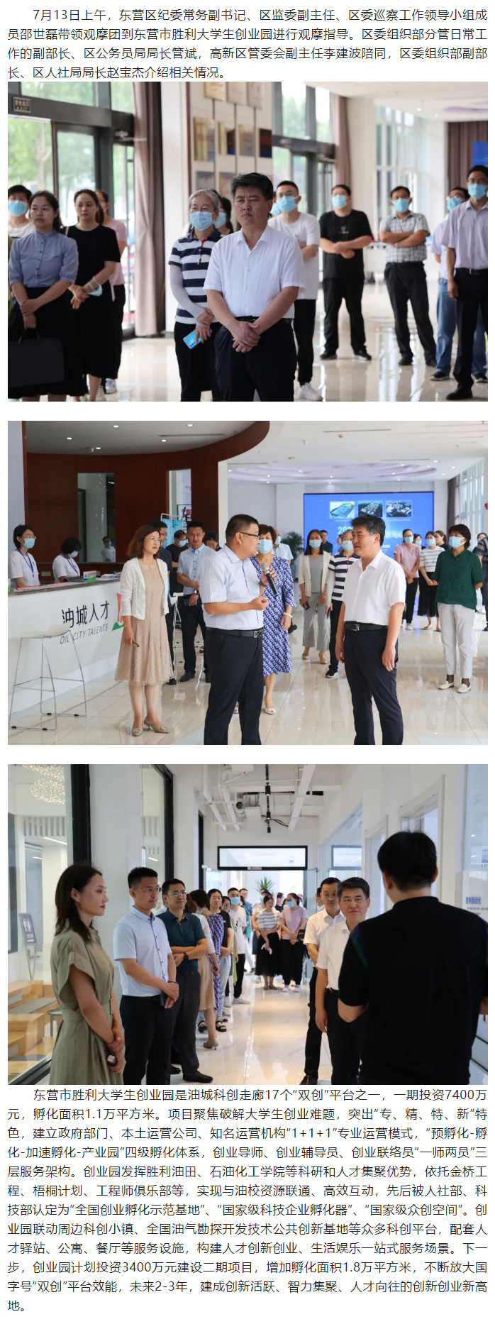 东营区政协到东营市胜利大学生创业园观摩指导