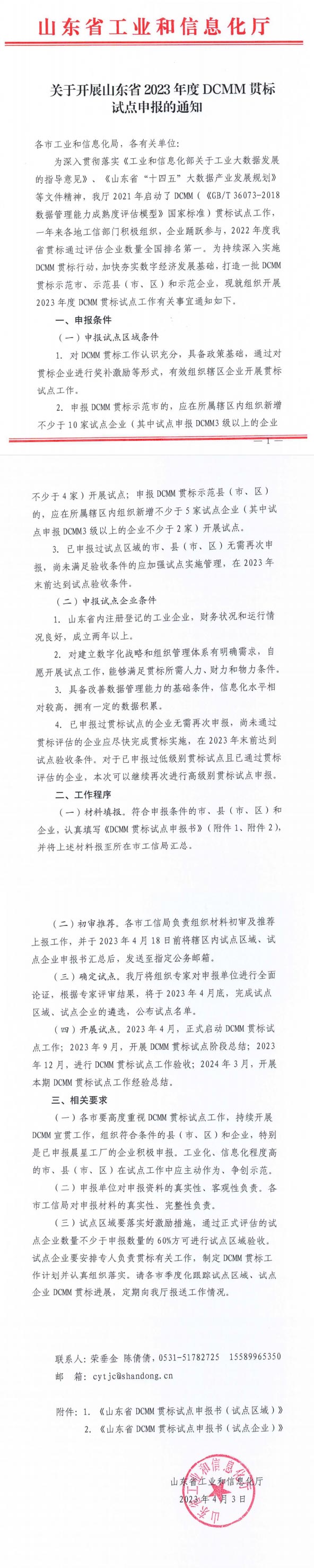 【项目申报】关于开展山东省2023年度DCMM贯标试点申报的通知