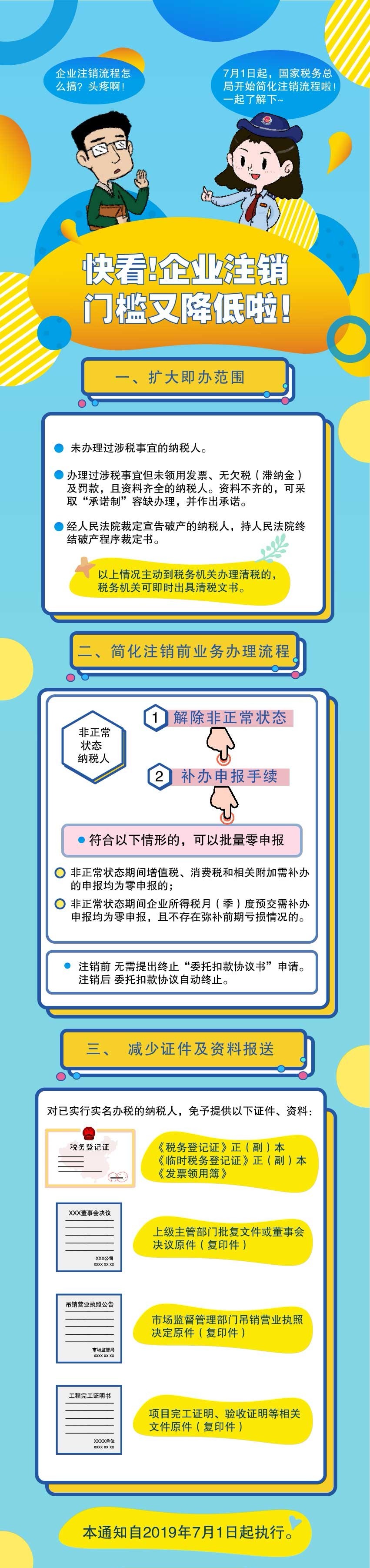 一、国税总局宣布:资料不齐的也可直接注销,7月1号开始施行。