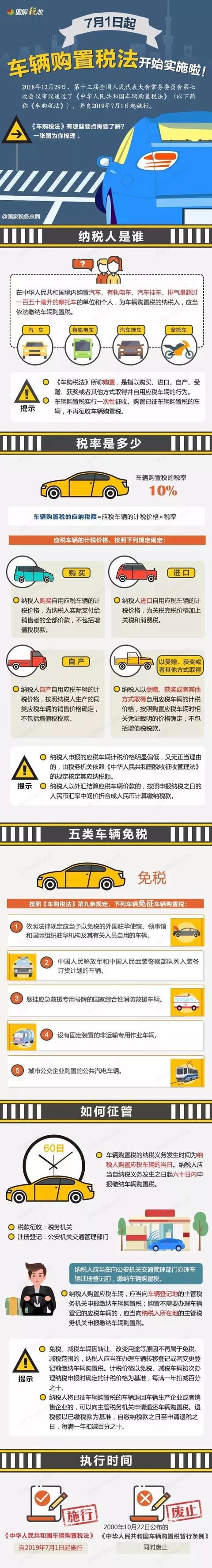 二、车辆购置税法2019年7月1日正式实施 税率为10%!