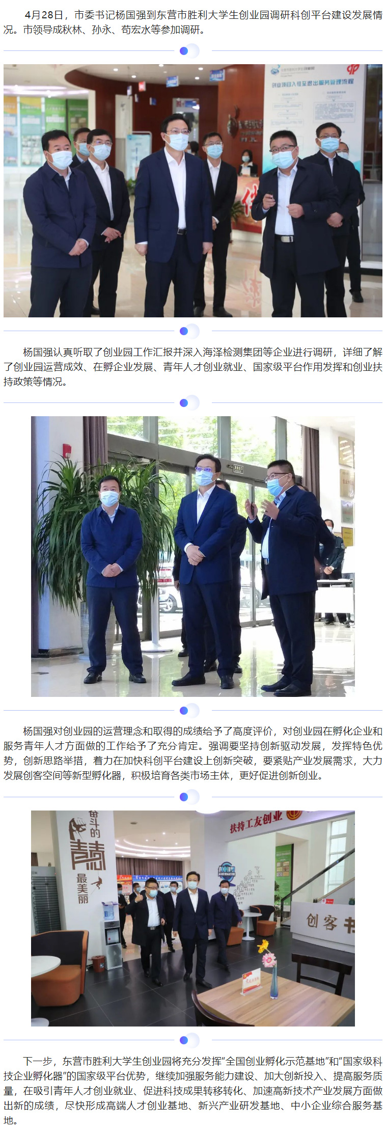 市委书记杨国强到东营市胜利大学生创业园调研指导