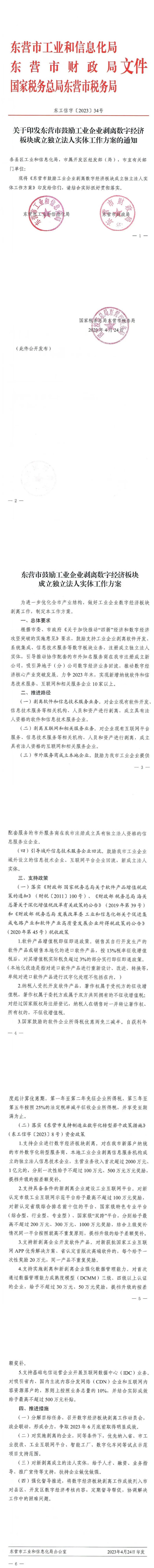 关于印发东营市鼓励工业企业剥离数字经济板块成立独立法人实体工作方案的通知