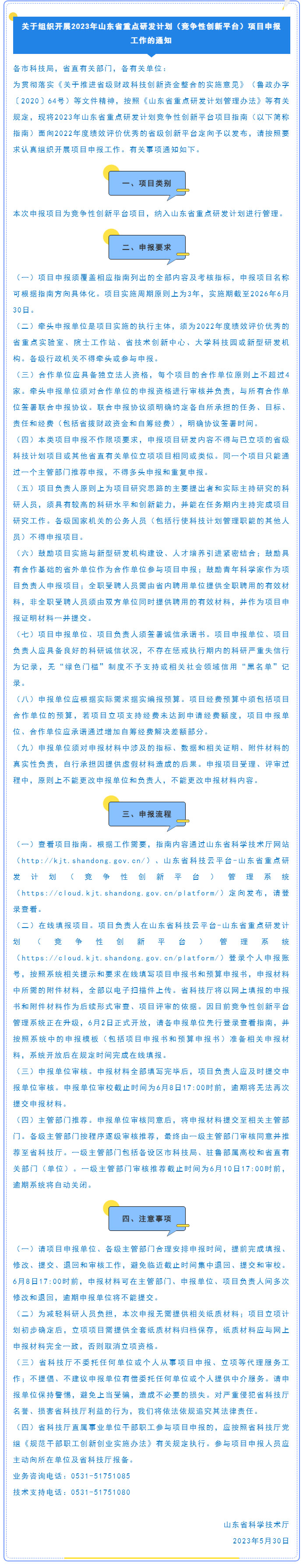 【项目申报】2023年山东省重点研发计划(竞争性创新平台)项目开始申报