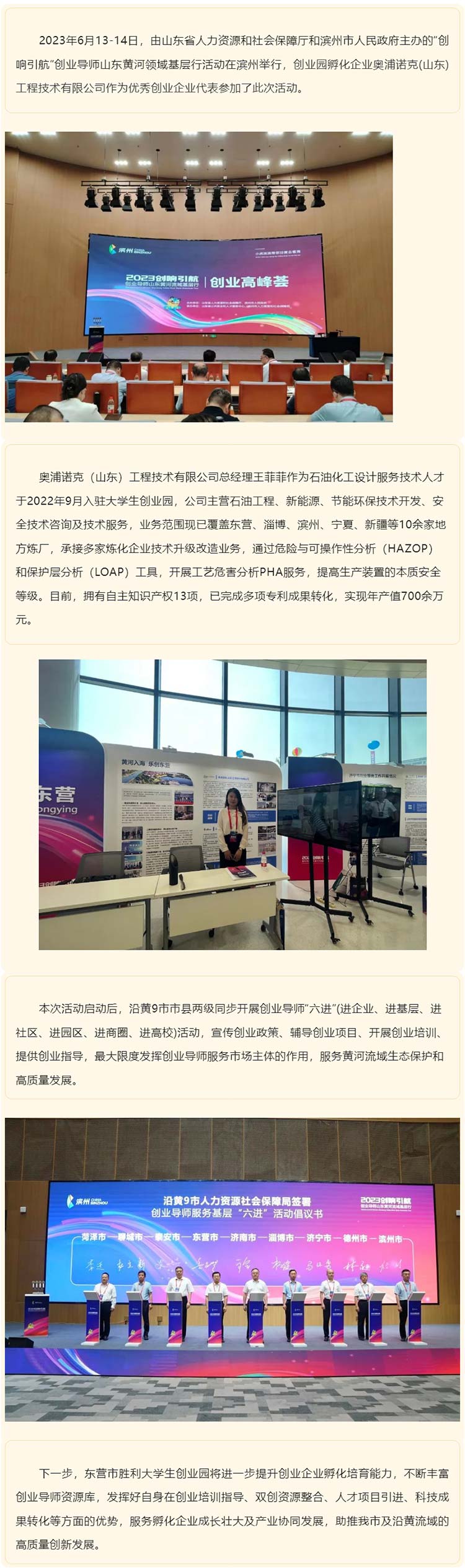 创业园企业奥浦诺克作为优秀创业企业代表参加“创响引航”创业导师山东黄河领域基层行活动 淘小兑 东营科创创业园 2023-06-17 10:02 发表于山东