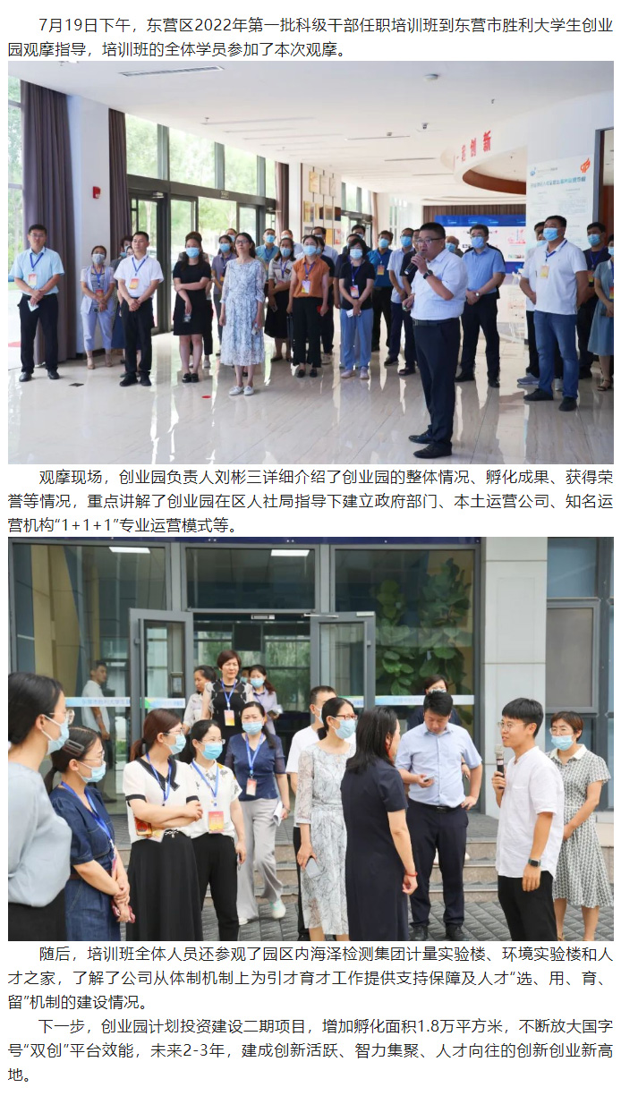 东营区2022年第一期科级干部任职培训班全体学员到东营市胜利大学生创业园观摩指导