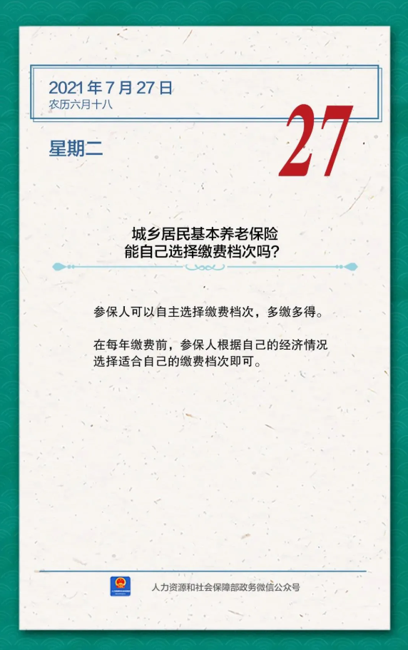 【政策解读·7月27日】城乡居民基本养老保险能自己选择缴费档次吗?