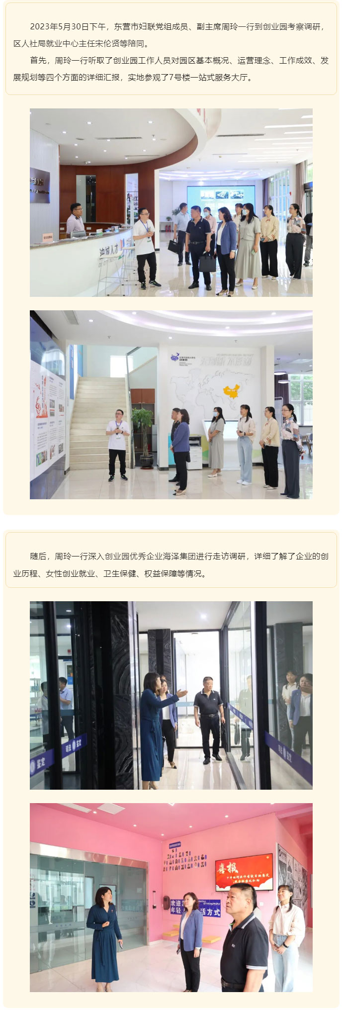 东营市妇联党组成员、副主席周玲一行到创业园考察调研
