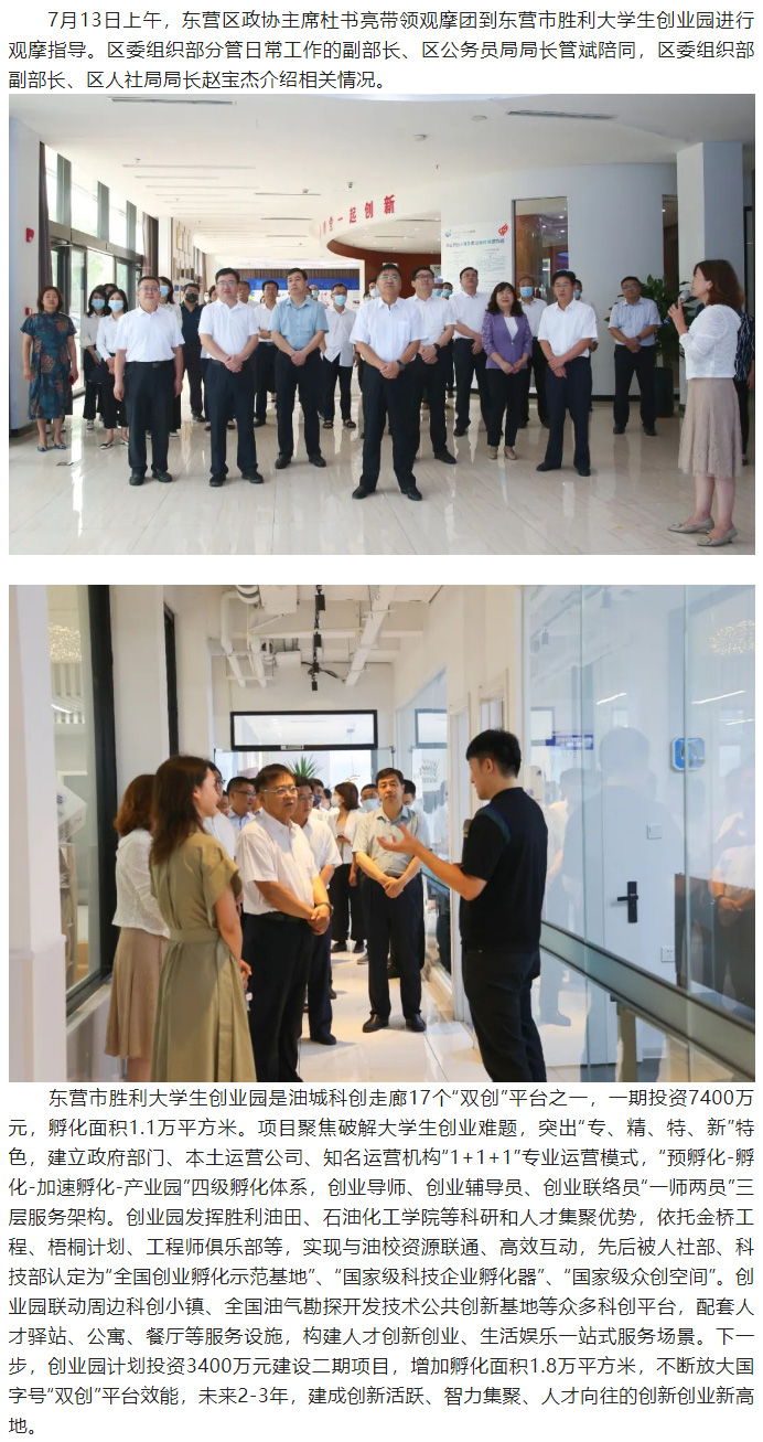 东营区纪委监委到东营市胜利大学生创业园观摩指导