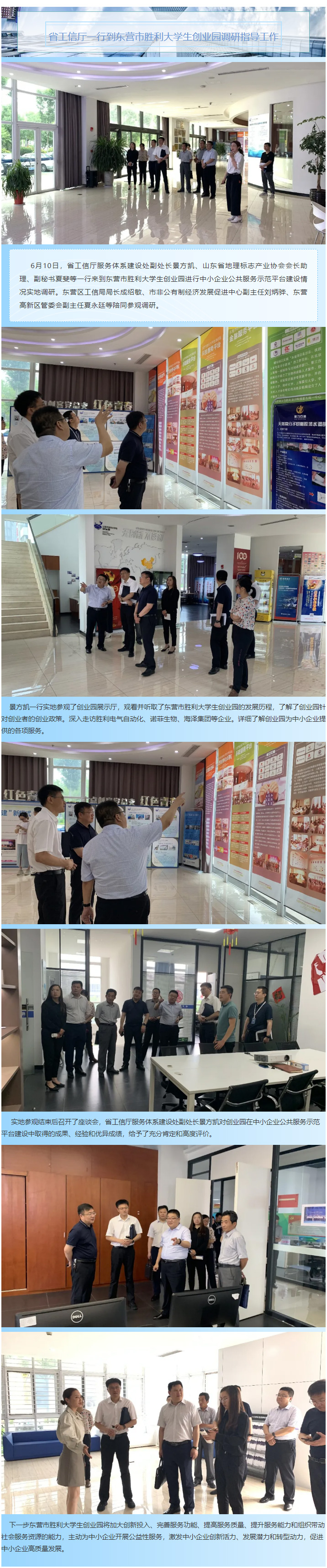 省工信厅一行到东营市胜利大学生创业园调研指导工作