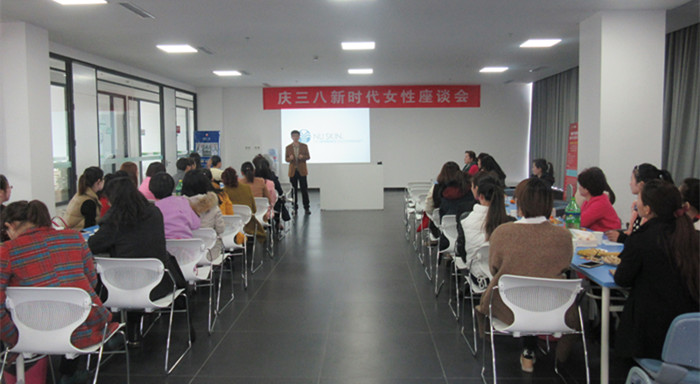 座谈会共分为三个方面进行,首先由园区高洋经理代表园区工作人员对所有参加座谈会的来宾表示感谢;其次由如新抗衰老公司的工作人员向各位讲解了如何防止女性衰老以及社交礼仪的知识;最后由如新抗衰老公司的工作人员向各位展示了如何化妆方面的知识。